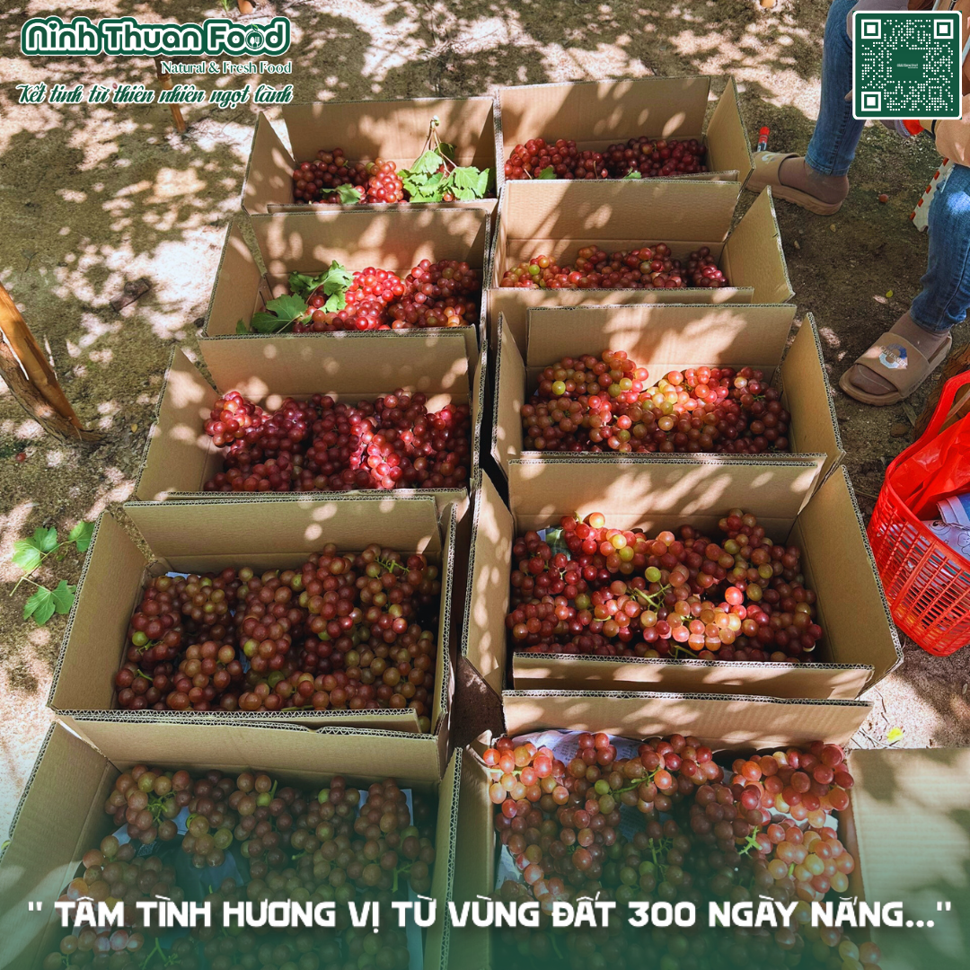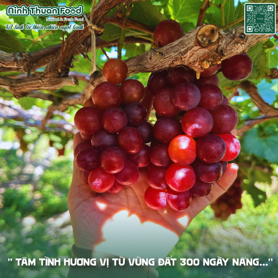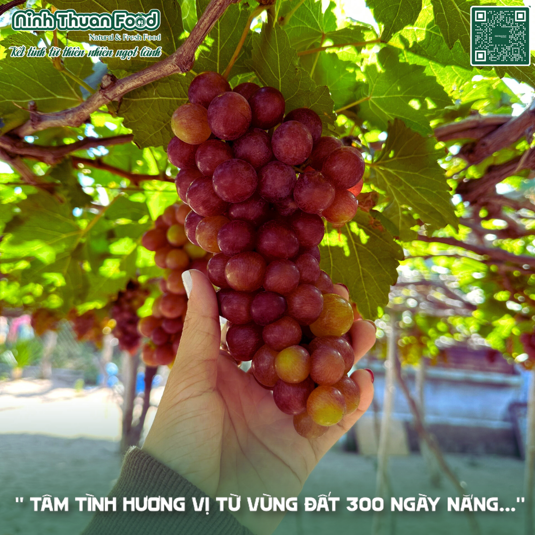 Tại Ninh Thuận Food, chúng tôi cung cấp cho thị trường loại nho đỏ được trồng tại thôn Thái An (thuộc xã Vĩnh Hải, huyện Ninh Hải). Nơi có hơn 200ha diện tích chuyên trồng cây nho và được mệnh danh là “thủ phủ nho” của Ninh Thuận. Nghề trồng nho cũng chính là nghề truyền thống của thôn Thái An, là điểm đến tham quan, trải nghiệm không gian sinh thái nhà vườn hấp dẫn nhất của du lịch Ninh Thuận hiện nay.